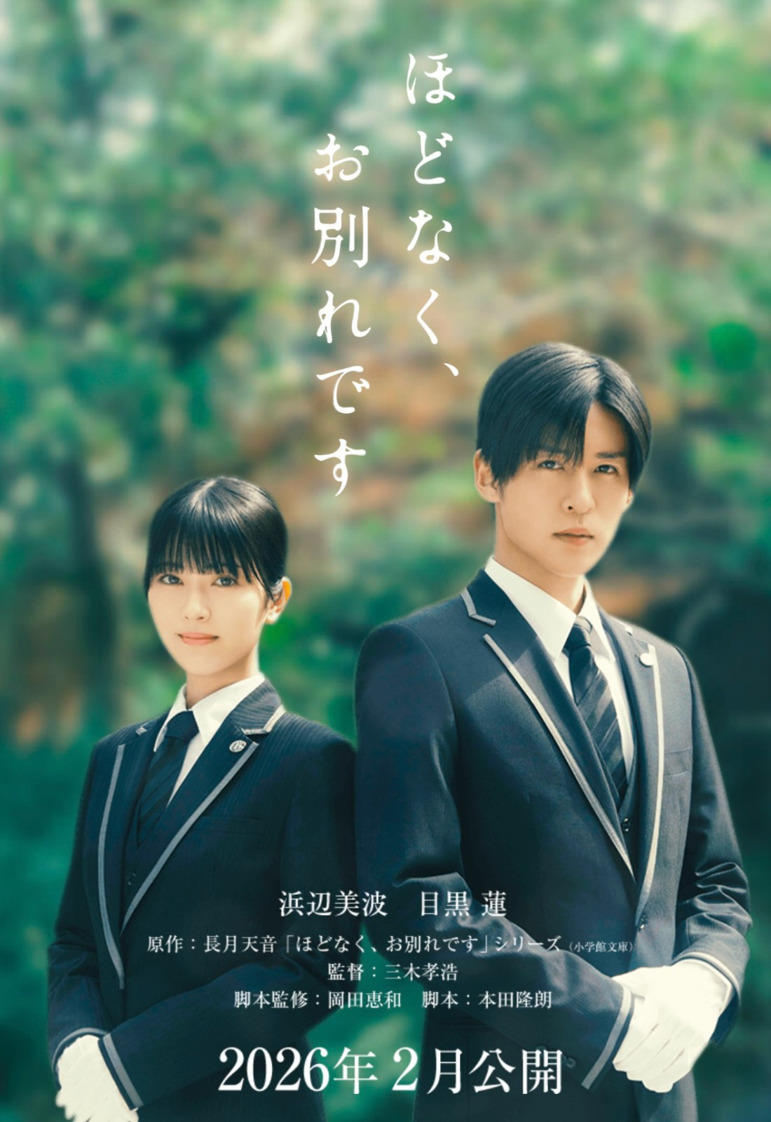1905电影网讯 4月30日,由三木孝浩导演,本田隆朗编剧,冈田惠和监修剧本,目黑莲、滨边美波双主演的电影《不久,就要告别了》(ほどなく、お別れです)官宣将于2026年2月上映。