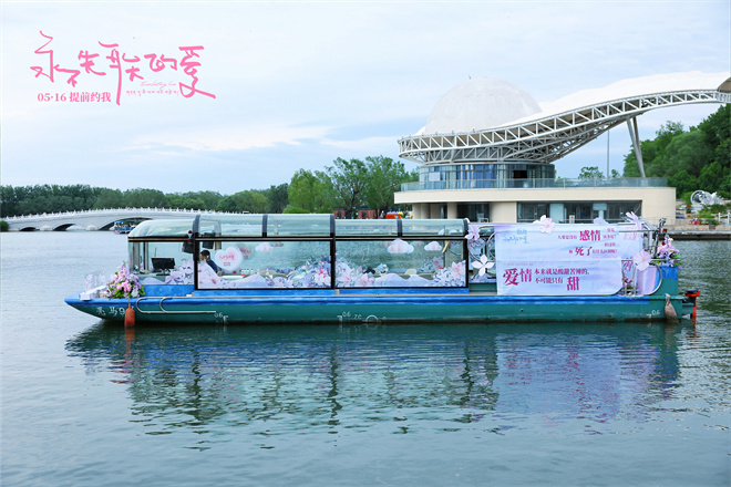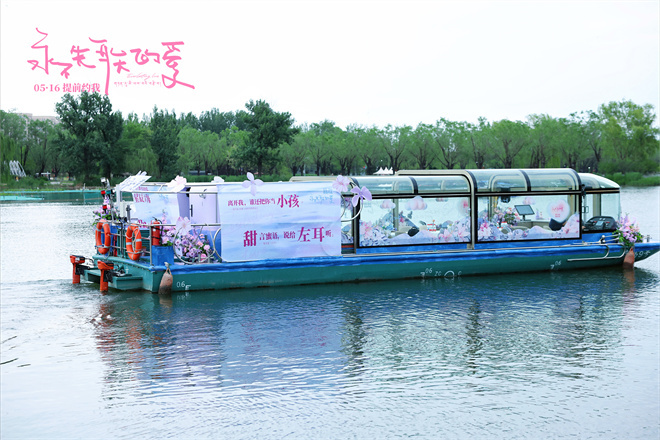 为配合影片“大声告白”的主题,电影近日在北京亮马河打造了为期15天的“永不失联的爱”主题游船展。船舱外装置了电影中承载重要情感线索的台词,将该片编剧饶雪漫最让人耳熟能详的金句以船幡的形式呈现,吸引了众多情侣前来打卡。