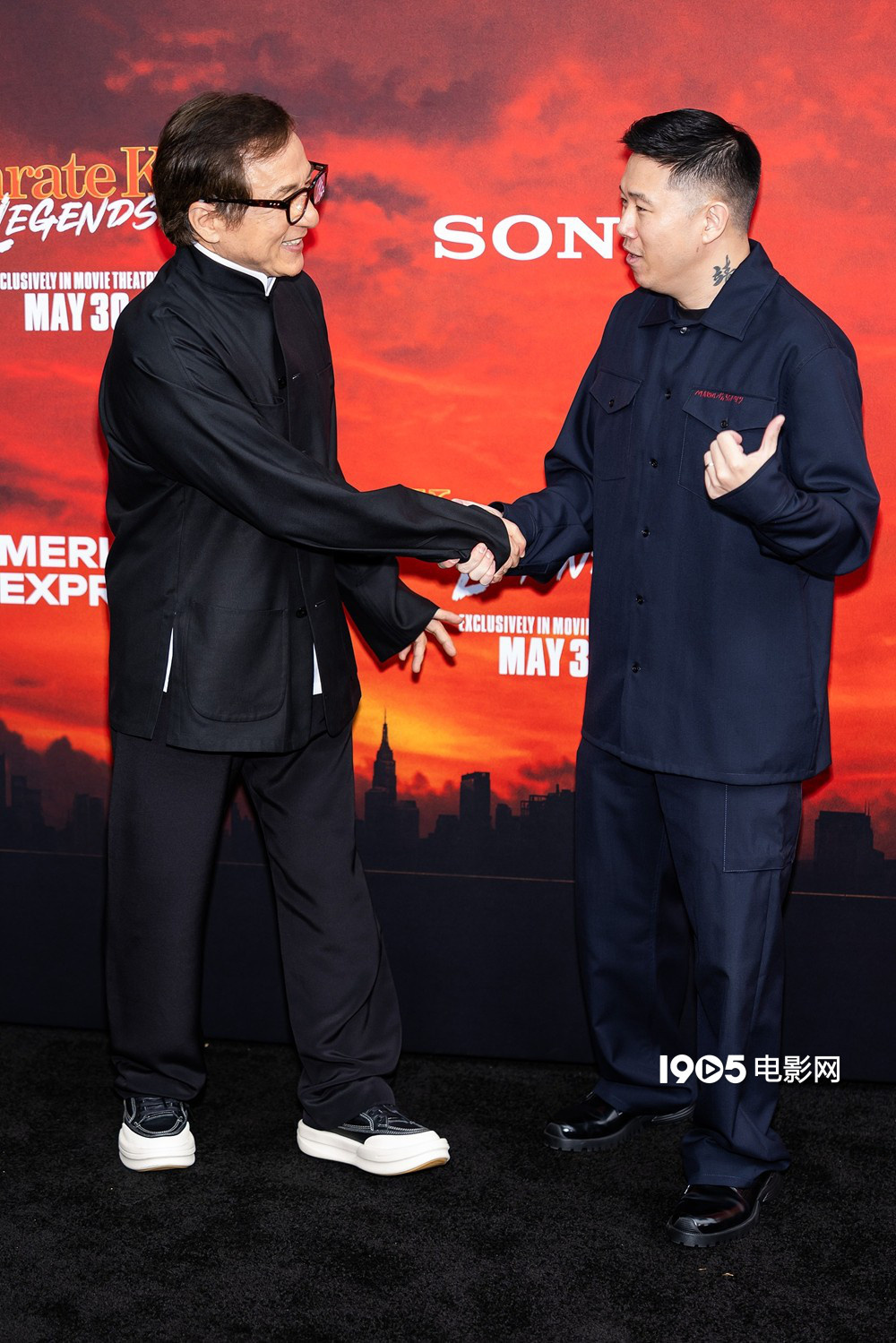 1905电影网讯 当地时间5月27日,美国纽约,电影《功夫梦:融合之道》(Karate Kid: Legends)举行全球首映礼,影片主演成龙、王班、 拉尔夫·马基奥,为影片献唱主题曲的欧阳靖也一同亮相。