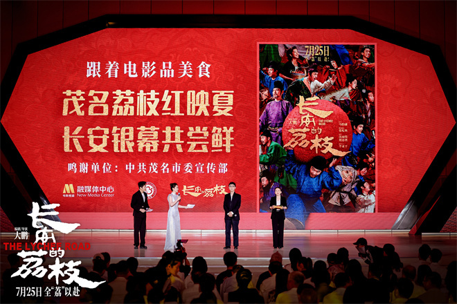 电影《长安的荔枝》不仅是一场关于荔枝的千里奔赴,更是一次穿越千年的文化邀约。在国家电影局启动的“跟着电影去旅游”、“跟着电影品美食”等活动的号召下,影片与著名的“荔枝之乡”广东茂名进行了深度合作。在此次活动现场,大鹏导演为大家送上了由茂名市提供的当天新鲜采摘送达的荔枝。这些产自1300年古荔枝树的荔枝,让众多嘉宾与观众品尝到鲜甜,并感受到如今的荔枝运输与一千多年前的唐代截然不同的速度。